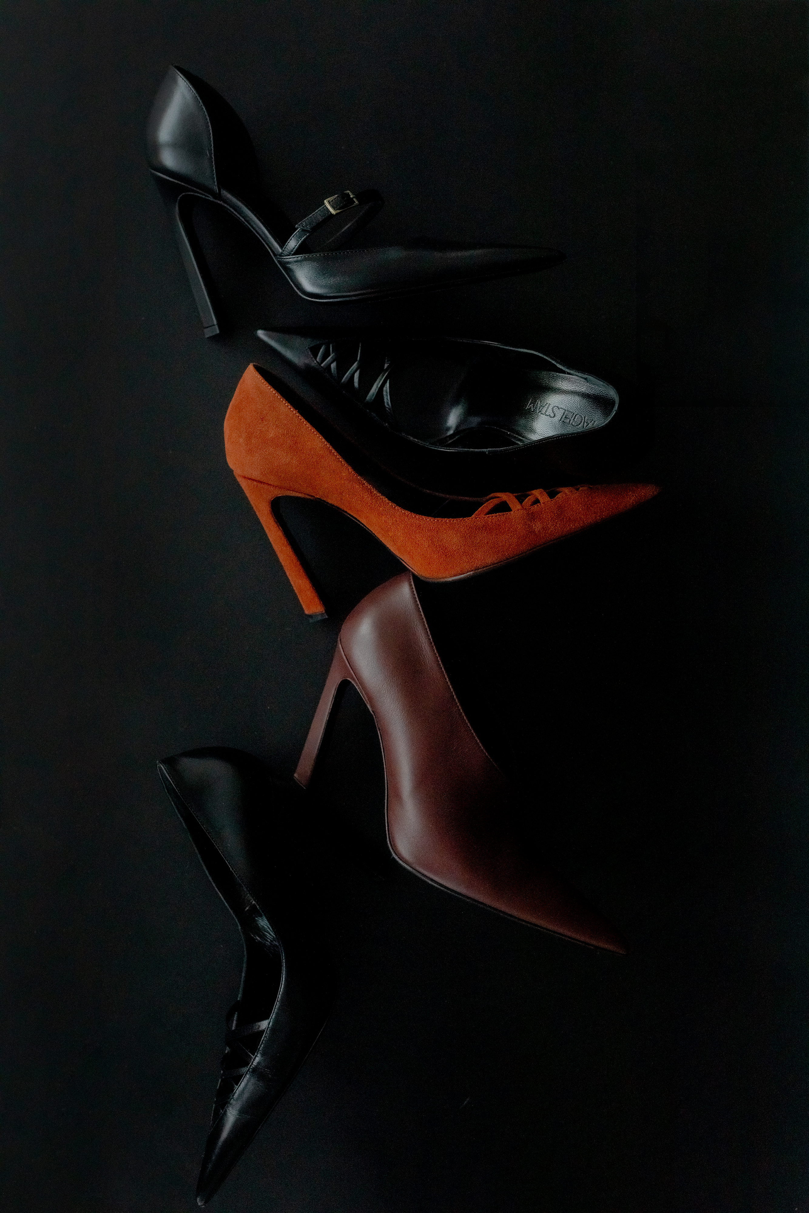 Spring-Summer collection, exploring reflections through contrasts, curves, and symmetry. Featuring 105mm heels and a new 55mm kitten heel.