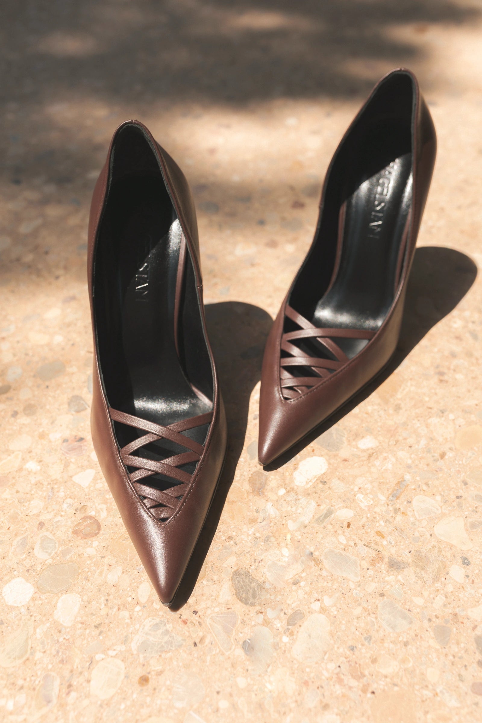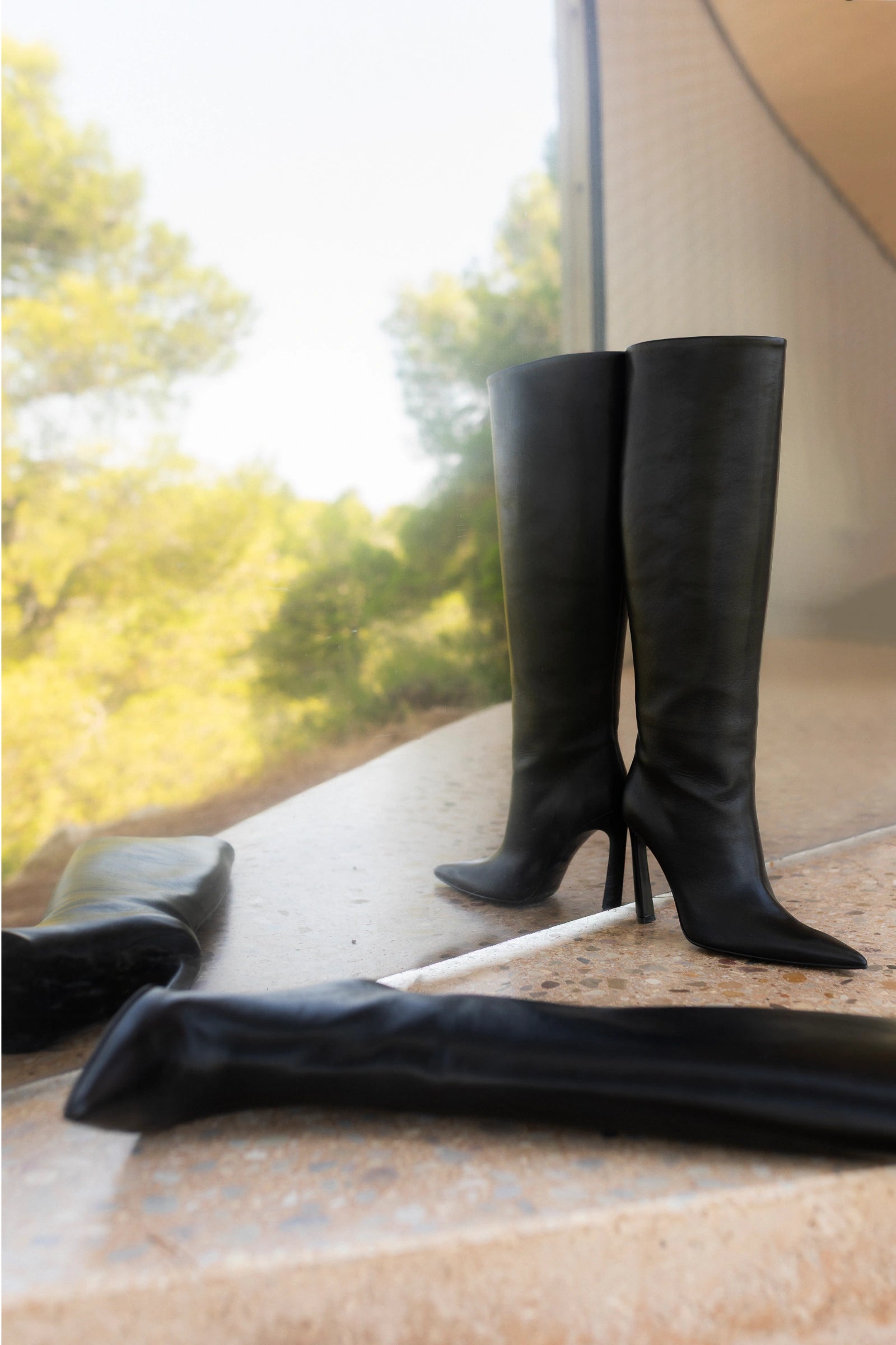 Our Act Four collection introduces Autumn–Winter 2025 through new shapes, colours, and refined details. Tall boots, ankle boots, and buckle loafers are adorned with gold accents, while a new 85mm heel joins the existing 105mm and 55mm heights. Continuing Hagelstam’s exploration of modern femininity, the collection blends sculptural form with timeless simplicity.